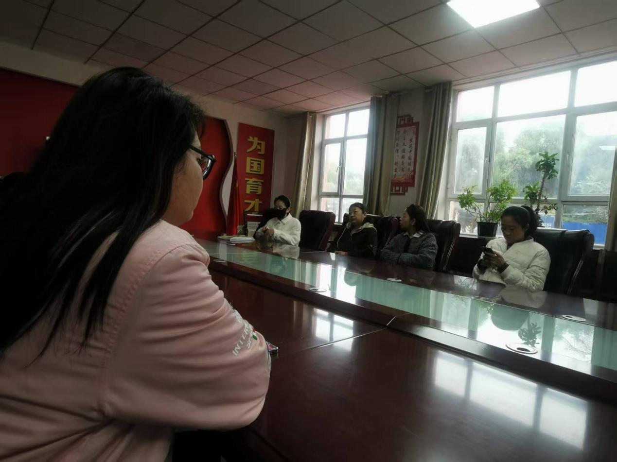 物理学(师范)专业叶薇与驻点教师刘金雪和沙湾市第五中学老师探讨中学生心理情况