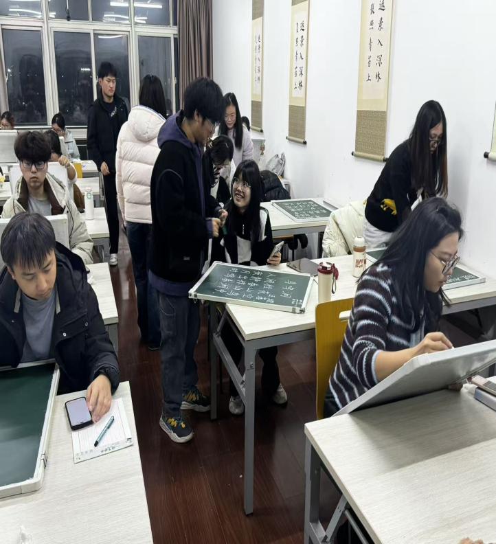 助教们逐字拆解间架结构,用通俗的讲解帮助大家领悟字形的均衡与美感。从笔画顺序的规范到整体布局的协调,从运笔力度的把控到篇章气韵的营造,助教们倾囊相授专业知识,更用温暖的鼓励点燃大家的信心。这份悉心陪伴,让书法课堂始终洋溢着向上的力量与满满的暖意。